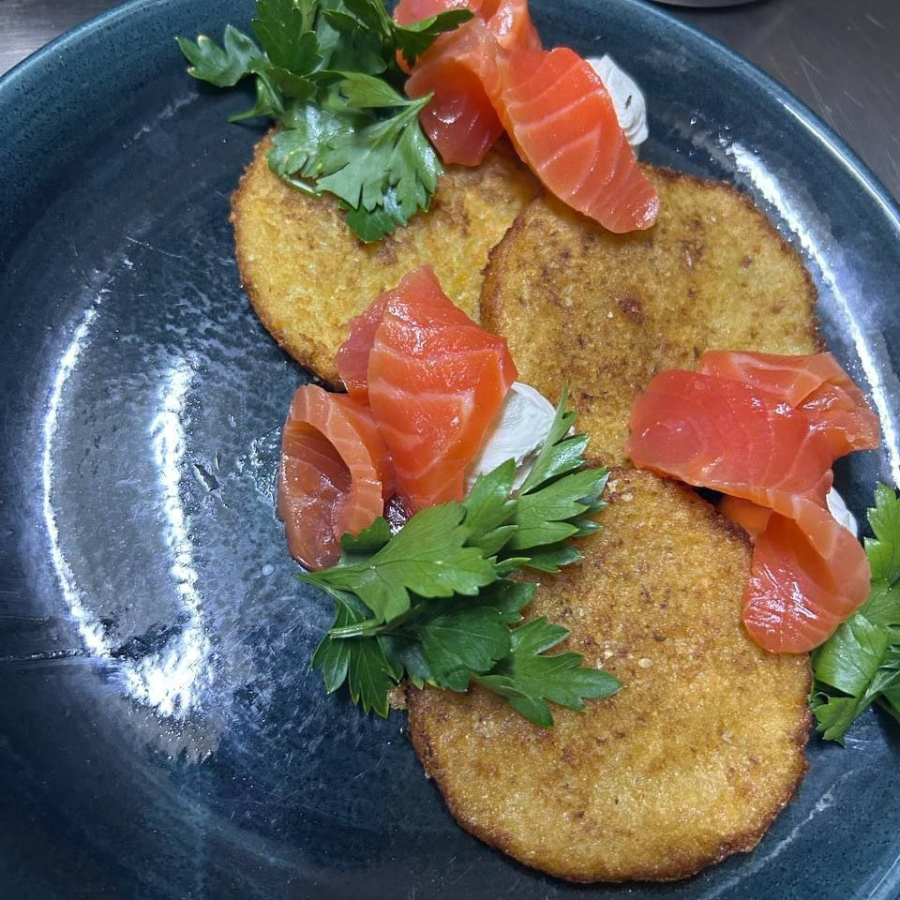 Заказать Драники с слабосолёным лососем, 7 Пятниц