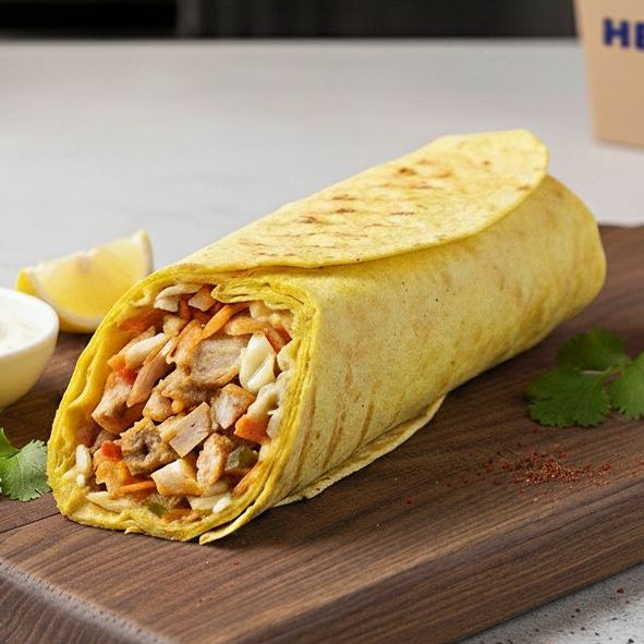 Заказать Лаваш, курица, салат Коул-слоу, свежий огурчик, томат, сырный соус, сыр Масдам, плавленый сыр.