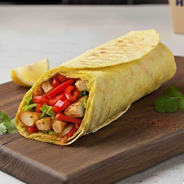 Заказать Лаваш, соус горчичный, салат Коул-слоу, кукуруза, шампиньоны маринованные, халапеньо, курица, соус острый фирменный.