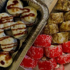 Темпура с крабом, Темпура с тунцом, Запеченная Аляска, Запеченные маки мини с креветкой.