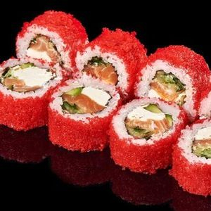 Заказать Рис, нори, сливочный сыр, огурец, лосось, икра масаго.