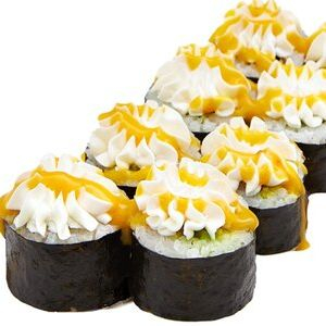 Заказать Рис, нори, тунец, огурец, сыр сливочный, соус спайси.