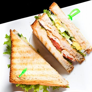 Тостовый хлеб, ветчина, соус чесночный, сыр.