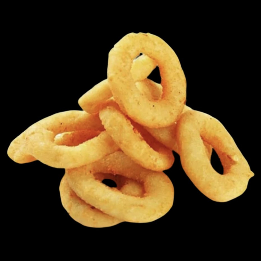 Заказать Луковые кольца: идеальный баланс текстур и вкусов. Под ослепительно-золотистой, оглушительно хрустящей панировкой скрывается нежный, сладковатый лук, ставший почти кремовым от жара.
