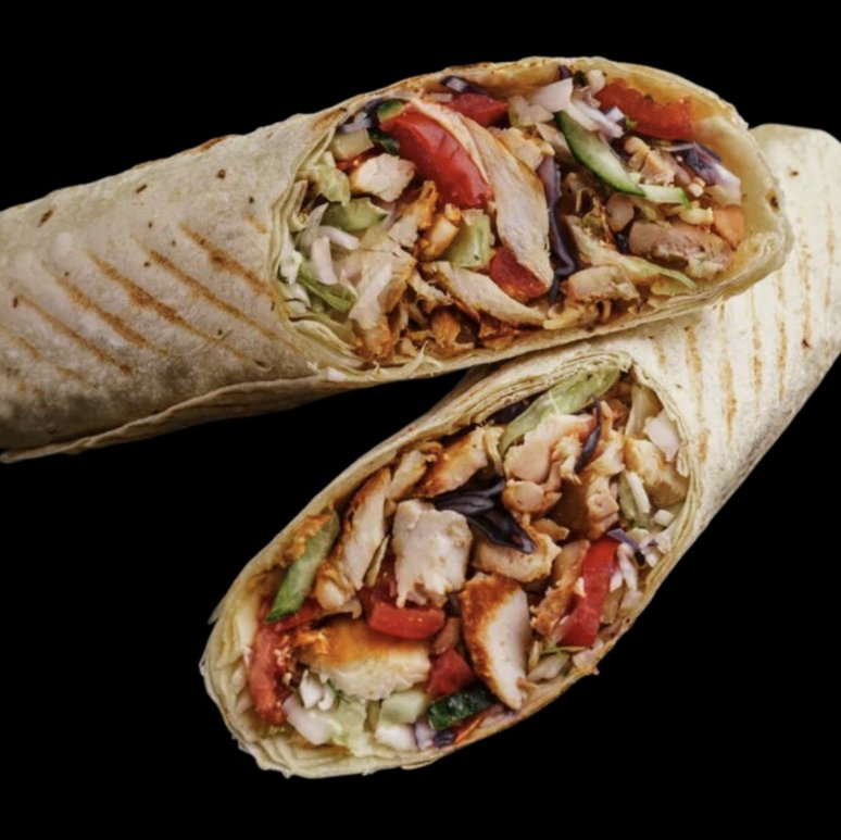 Внутри сочные , ароматные кусочки мясо , медленно обжаренная до совершенства истощающий пикантный аромат. Сочетание и свежесть хрустящий капусты, маринованной морковки, нежные и свежие овощи (огурцы, помидоры) , сдобренные чесночным и терияки соусом, который связывает все воедино.