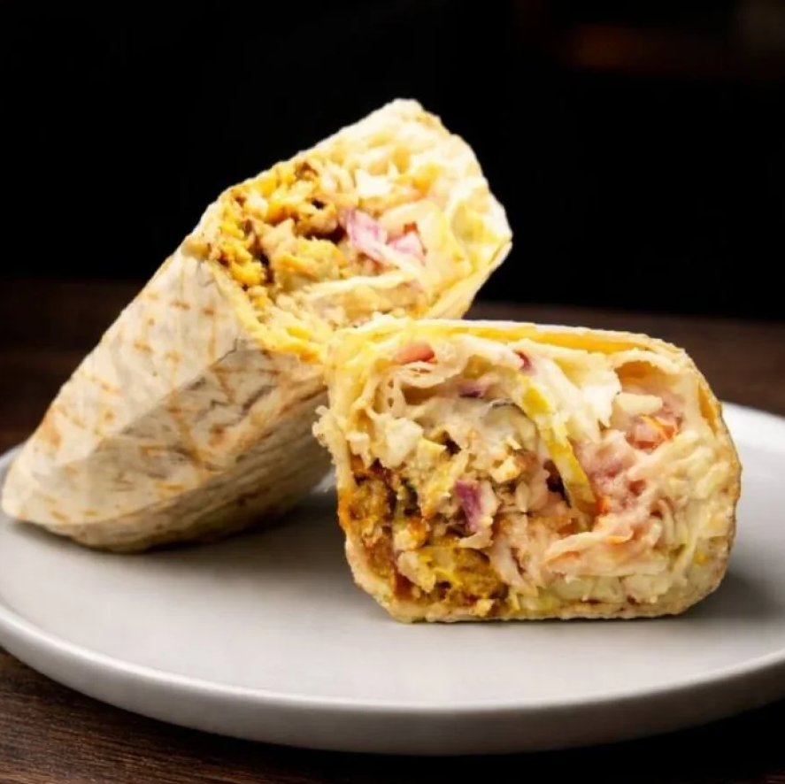 Лаваш, капуста, помидор, наггетсы, луковые кольца, сыр Моцарелла, соус Чесночный.