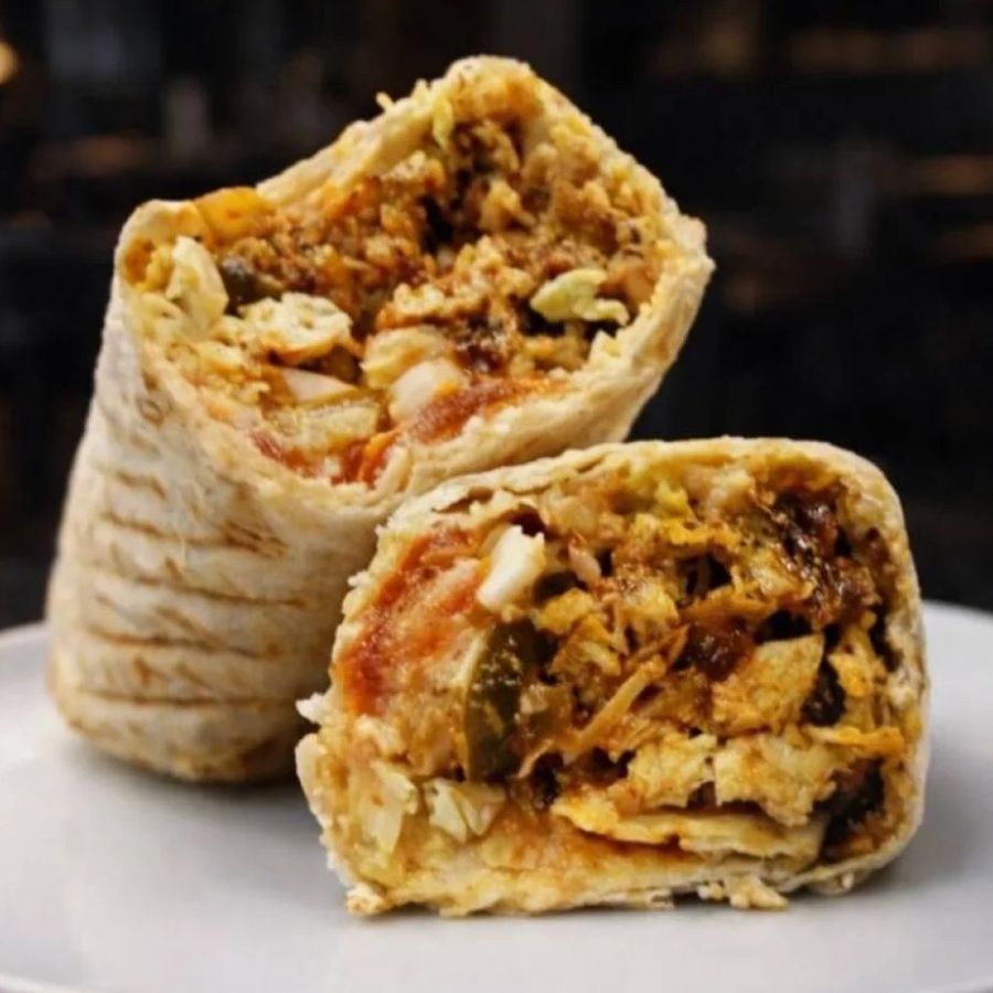 Лаваш, капуста, морковь По-корейски, огурец маринованный, курица-гриль, помидор, соус Тартар.