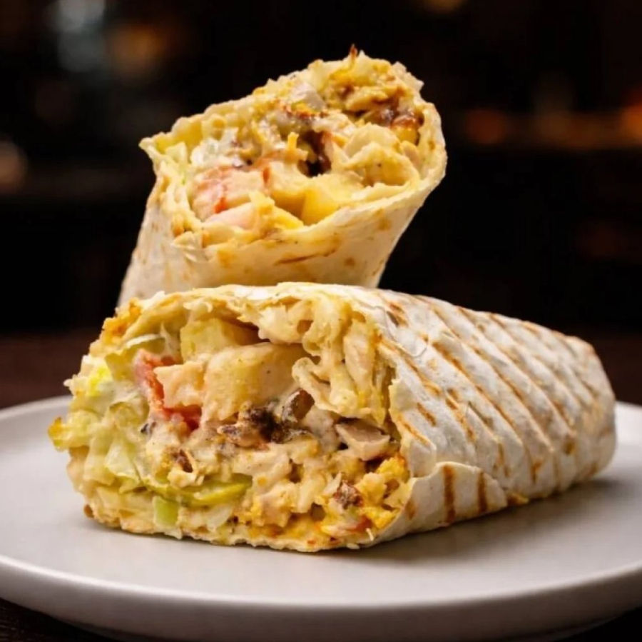 Лаваш, перец, сыр Моцарелла, огурец, курица-гриль, морковь По-корейски, соус Тартар.