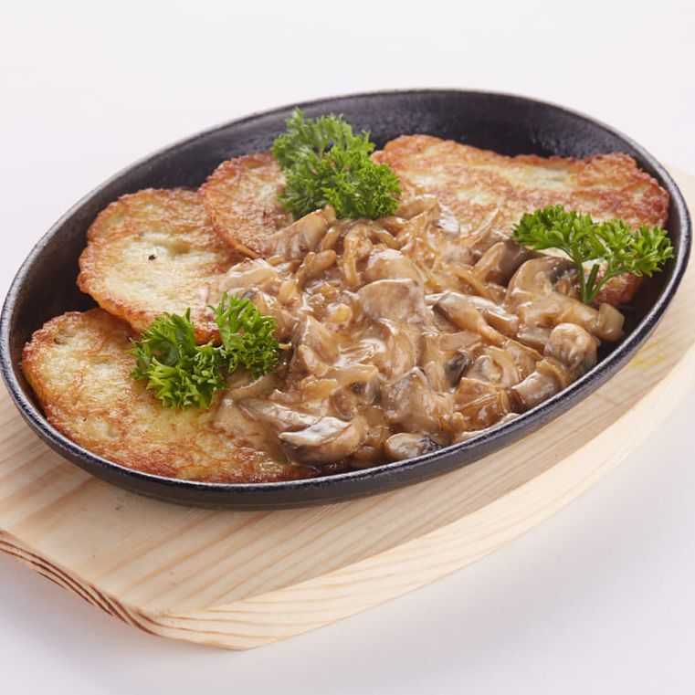 Заказать Драники с курицей и грибами в сливочном соусе, Шеф Блинчик