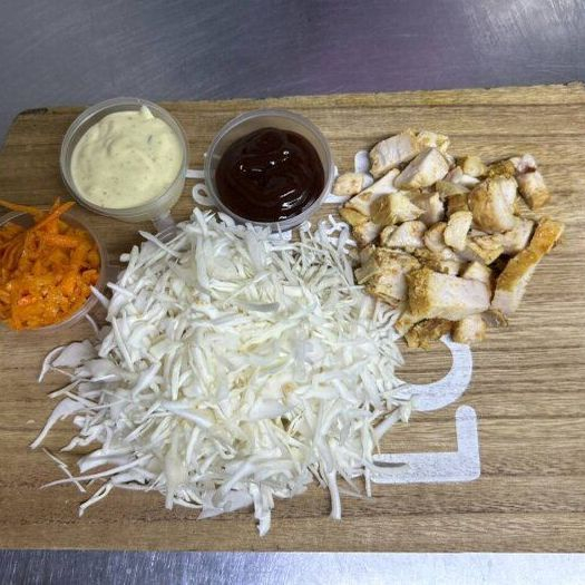 Заказать Капуста, морковь пряная, курица, соус Барбекю, соус Фирменный, специи.
