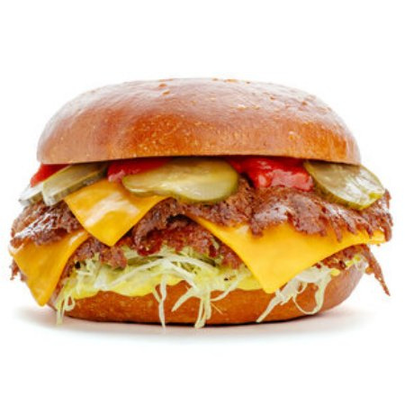Булочка картофельная, говядина, чеддер, огурец маринованный, кетчуп.