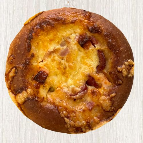 Тесто, соус, колбаски, мортаделла, бекон, заливка, сыр сливочный.
