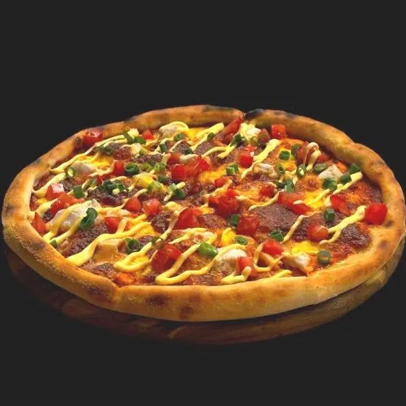 Заказать Филе цыпленка, помидор, сырный соус, сыр Моцарелла, сыр Чеддер, томатный соус, специи.