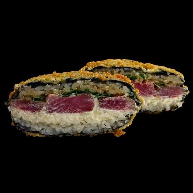 Заказать Нори, рис, сыр творожный, тунец, лук перо, кунжутный соус.