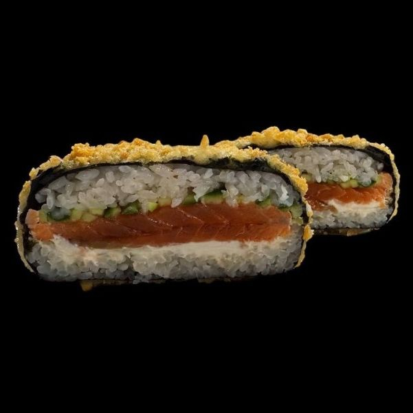 Заказать Нори, рис, сыр творожный, форель с/с, огурец, кляр, панко.