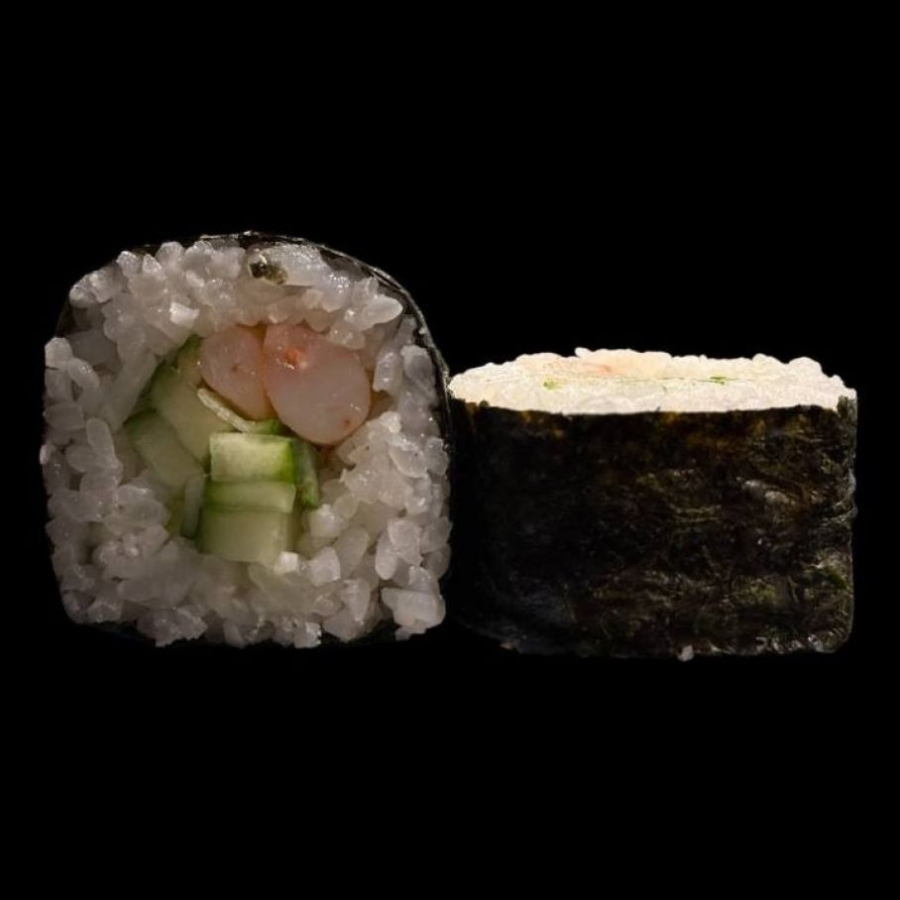 Нори, рис, креветка, огурец.