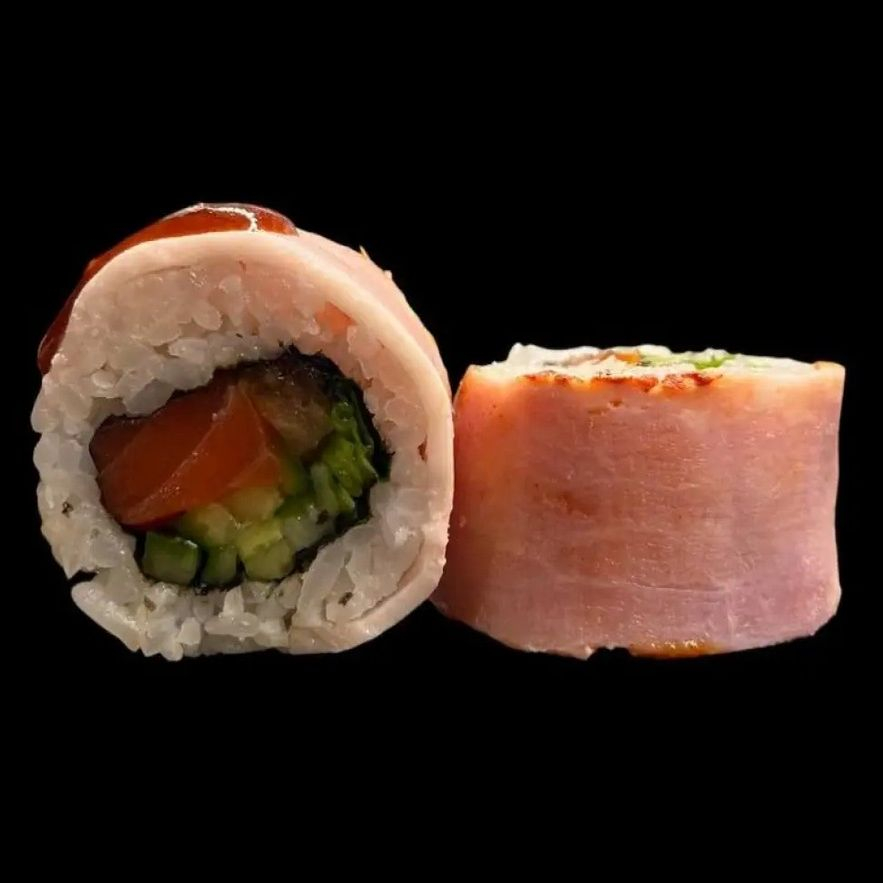 Заказать Нори, рис, форель, помидор, лук перо, огурец, соус Кимчи.