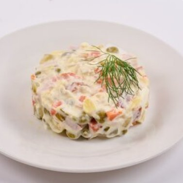 Заказать Ветчина, картофель, морковь, горошек, яйца куриные, огурцы маринованные, майонез, соль, перец молотый.