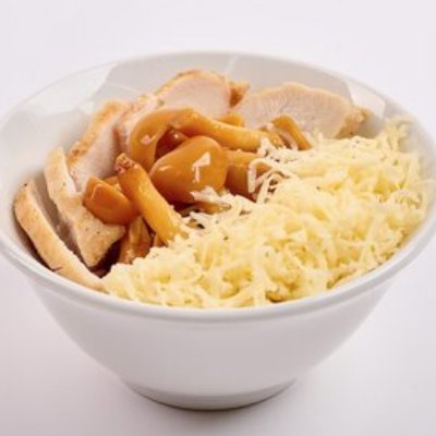 Заказать Опята маринованные, огурцы, помидоры, сыр, куриное филе, заправка медово-горчичная.