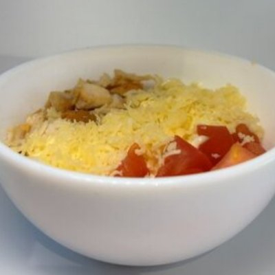 Заказать Салат айсберг, помидоры, куриное филе обжаренное, сыр, лимон, майонез, соевый соус.