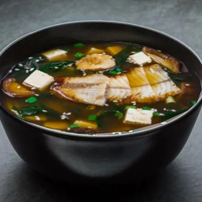 Заказать Вода, паста мисо темная, паста мисо светлая, хондаши, вакамэ, сыр тофу, кунжут, угорь.
