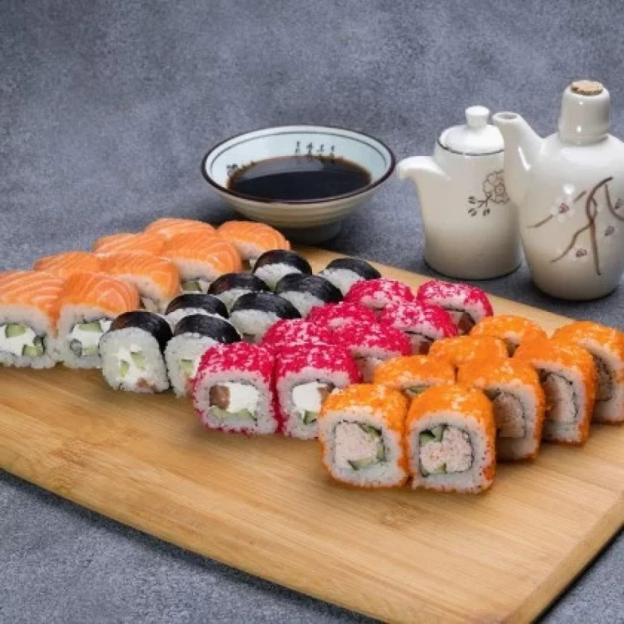 Калифорния крабовый микс: Рис, нори, сыр творожный, огурец, краб, масаго оранжевая - 270 гр. Филадельфия Тай: Рис, нори, сыр творожный, огурец, лосось - 240 гр. Сливочный тунец: Рис, нори, сыр творожный, соус терияки, кунжут, ананас, тунец - 255 гр. Фараон: Рис, нори, сыр творожный, курица копчёная, краб, сливочно-чесночный, соус кунжут белый, соус терияки, лук фри - 335 гр. Запеченный с лососем: Рис, нори, сыр творожный, лосось, сырный соус, соус терияки, кунжут белый - 290 гр. Чикен хот: Рис , нори, сыр творожный, курица копчёная, авокадо, темпура, сухари-280 гр. Калифорния хот: Рис, нори, краб, сыр творожный, огурец, темпура, сухари-290 гр.