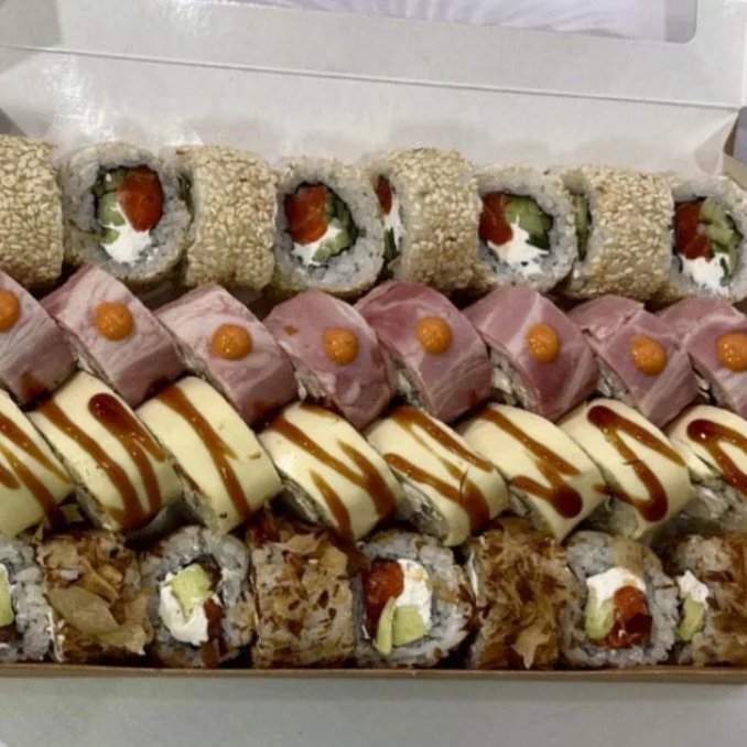 Лава с крабом: Рис, нори, сыр творожный, салат, соус терияки, краб, масаго красная-305 гр. Чикен чиз: Рис, нори, сыр творожный, салат, курица копчёная, сыр чеддер, соус терияки-270 гр. Фараон: Рис, нори, сыр творожный, курица копчёная, краб, сливочно-чесночный соус, кунжут-белый, соус терияки, лук фри-335гр. Запеченный с лососем: Рис, нори, сыр творожный, лосось, сырный соус, соус терияки, кунжут белый-290 гр. Мантра: Рис, нори, огурец, кальмар, сыр творожный, кунжут, сливочно-чесночный соус, соус терияки-330 гр. Мидия хот: Рис, нори, сыр творожный, томат, сухари, мидии, темпура, масаго-290 гр. Сяке хот: Рис, нори, сыр творожный, лосось, огурец, темпура, сухари-280 гр.