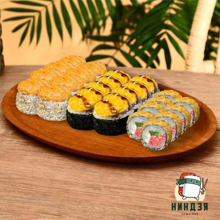 Заказать Морской бриз: Рис, нори, сыр творожный, авокадо, кунжут белый, креветка, сырный соус, соус терияки - 330 гр. Цунами: Рис, нори, сыр творожный, огурец, сырный, кунжут, соус терияки, мидии - 330 гр. Калифорния хот: Рис, нори, краб, сыр творожный, огурец, темпура, сухари - 280 гр.