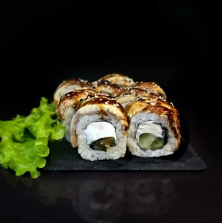 Рис, нори, сыр творожный, угорь, огурец, терияке.