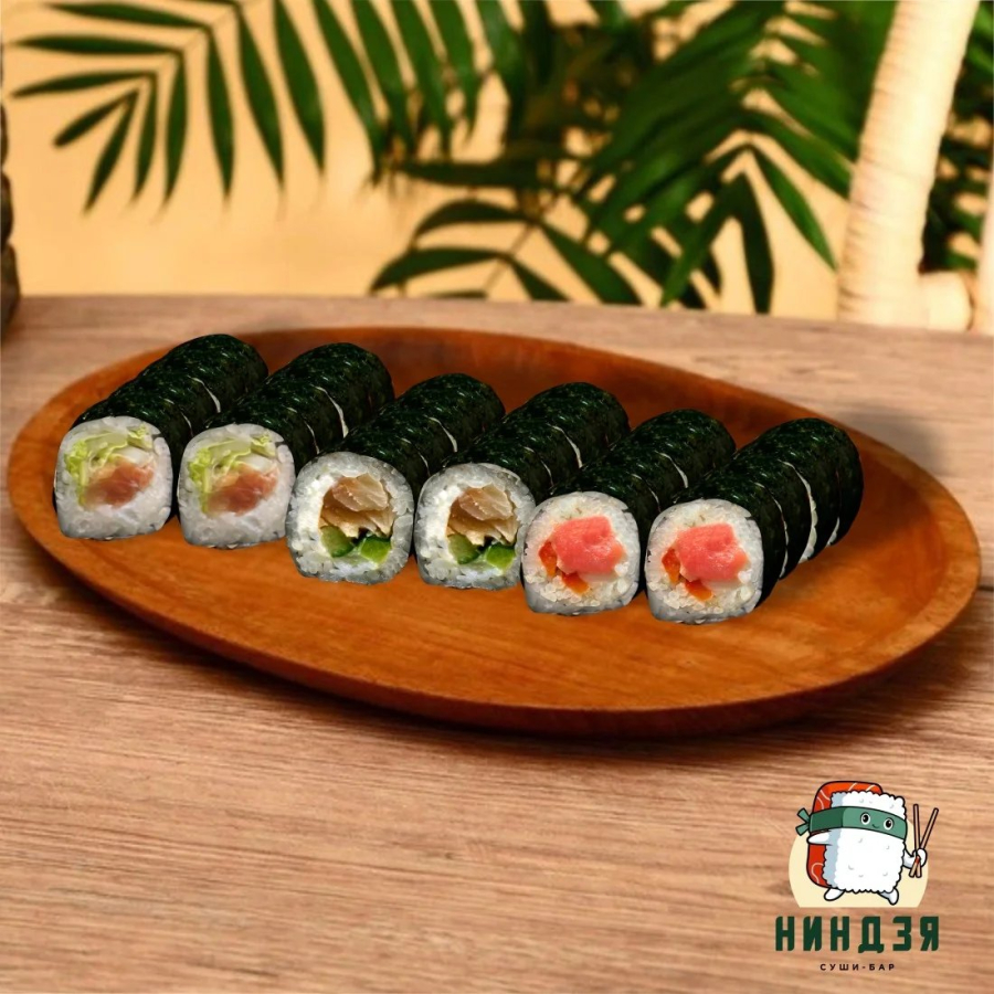 Ямайка: Рис, нори, сыр творожный, такуан, стружка нори, соус терияки, краб-275 гр. Тигр: Рис, нори, сыр творожный, огурец, креветка, масаго красная-265 гр. Эмодзи: Рис, нори, сыр творожный, краб, помидор, соус терияки, сливочно-чесночый соус, кунжут чёрно-белый-335 гр. Мантра: Рис, нори, огурец, кальмар, сыр творожный, кунжут, сливочно-чесночный соус, соус терияки-330 гр. Цунами: Рис, нори, сыр творожный, огурец, сырный соус, кунжут, соус терияки, мидии-330 гр. Гейша с крабом: Рис, нори, сыр творожный, краб, чука, кунжутный соус-260 гр. Туна хот: Рис, нори, сыр творожный, тунец, томат, темпура, сухари-280 гр.