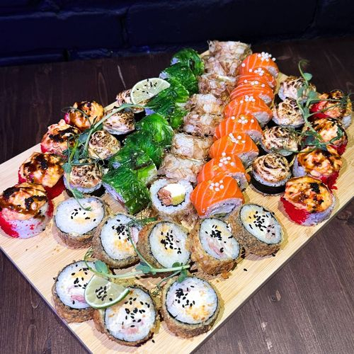 Заказать Фила с авокадо (рис, нори, лосось, творожный сыр, авокадо). Грин (рис, нори, творожный сыр, лосось, чука). Бонито с лососем терияки (рис, нори, лосось жареный в терияки, творожный сыр, такуан, стружка тунца). Ролл Невада (рис, нори, огурец, салат айсберг, опаленная шапочка из лосося терияки с майонезом). Темпура Чикен (рис, нори, творожный сыр, сыр-микс , копченая курица, бекон, темпура кляр). Запеченный ролл краб(рис, нори, икра тобико, кунжут, творожный сыр, огурец, шапочка-краб-микс, классический сыр, майонез, соус терияки). Соевый соус и васаби в подарок +2 комплекта палочек!
