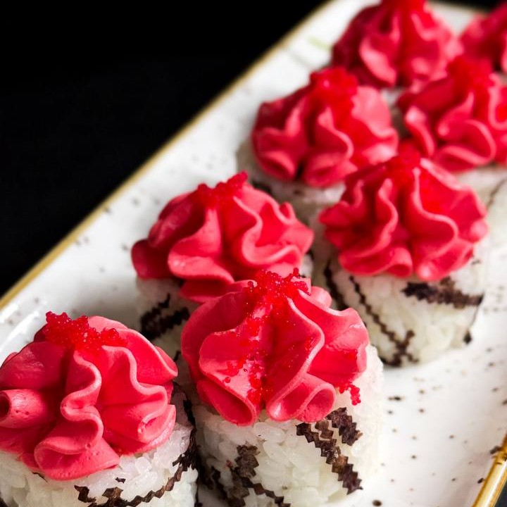Заказать Рис, нори, творожный сыр, айсберг, томат, перец, кунжут. Японский гарнир не входит в стоимость!