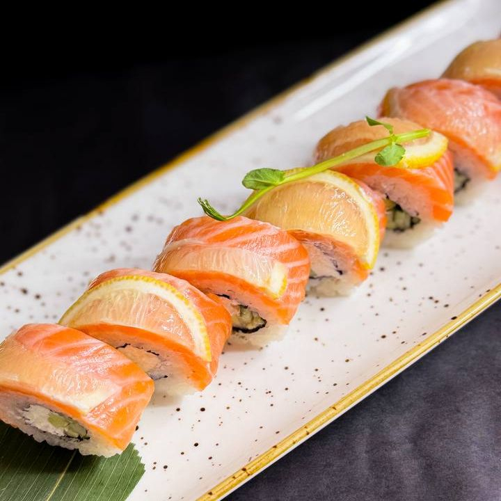 Заказать Форель, творожный сыр, огурец, лимон. Японский гарнир не входит в стоимость!