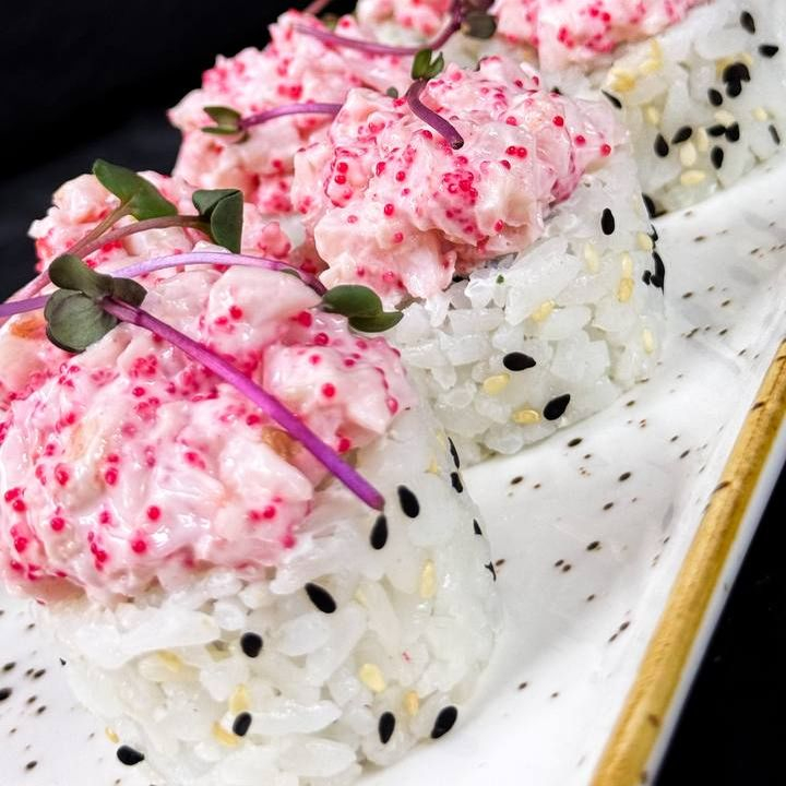 Заказать Креветка, творожный сыр, огурец, икра тобико, майонез, кунжут. Японский гарнир не входит в стоимость!