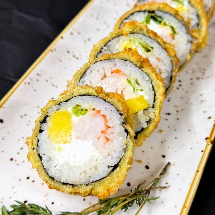 Заказать Креветка, манго, творожный сыр, салат айсберг. Японский гарнир не входит в стоимость!