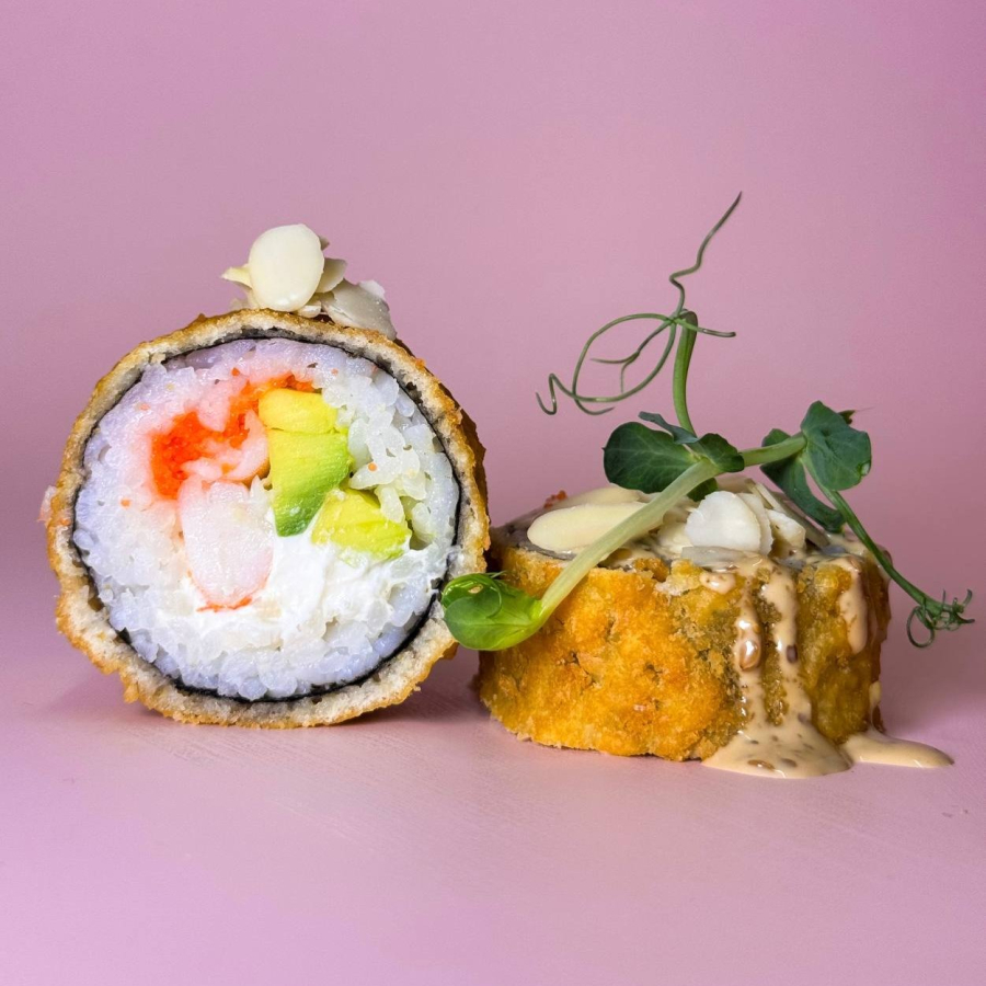 Заказать Рис, нори, темпура кляр, креветка в темпуре, соус спайси, сыр чеддер, бекон, салат айсберг. Японский гарнир не входит в стоимость!