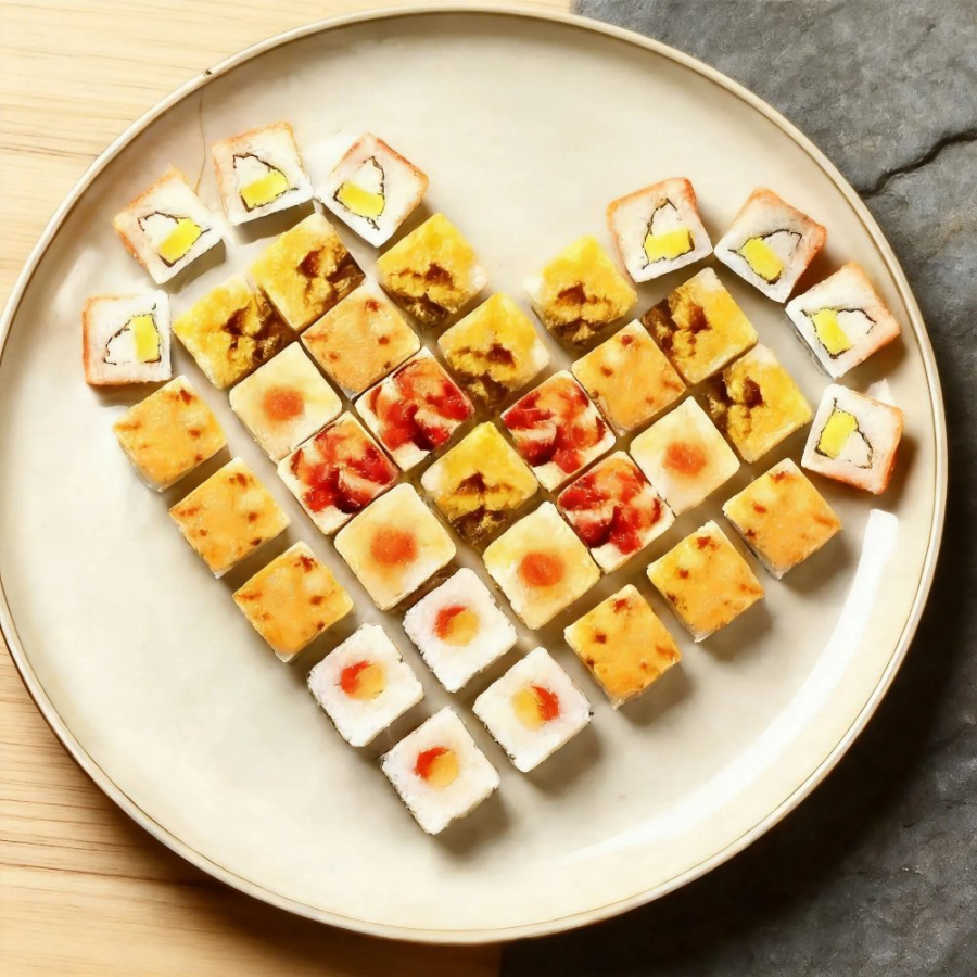 Заказать 1. Рис, нори, сыр творожный, ананас, перец, темпура, шапочка из куриного рулета под соусом карри. 2. Рис, нори, сыр творожный, манго, форель. 3. Рис, нори, сыр творожный, тунец, дайкон, сырная шапочка, кунжут. 4. Рис, нори, сыр творожный, спайси соус, форель. 5. Рис, нори, омлет тамаго, огурец, кокосовая стружка, сливочная шапочка, чили соус, терияки соус.