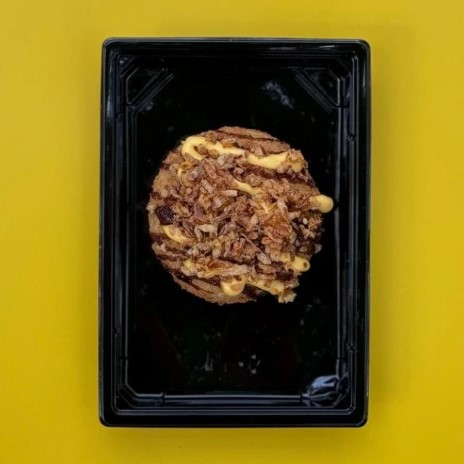 Рис, сыр, бекон, сухари панко, темпурная смесь, сырный соус, терияки, карамельный лук.