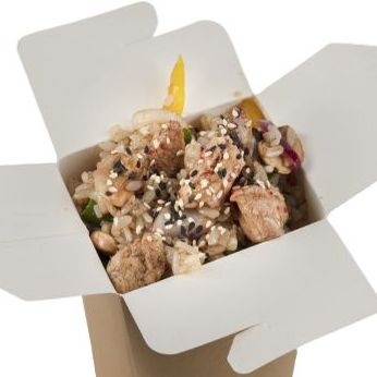 Заказать Рис, свинина, болг. перец, лук, спаржа, шампиньоны , соус сладкий чили, кунжут.