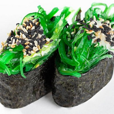 Рис, чука салат, соус омега, кунжут черный, кунжут белый, нори.