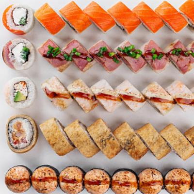 Калифорния итачи 4шт, Филадельфия авокадо 4шт, Филадельфия татаки 4шт, Пряный бекон 4шт, Опаленный с лососем 4шт, Опаленный с креветкой 4шт, Хот ролл с тунцом 8шт. 9cd8ba80-d6dd-4535-b1bd-09676c419f25 9cd8ba80-d6dd-4535-b1bd-09676c419f25