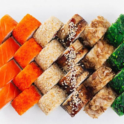 Калифорния итачи 4шт, Филадельфия авокадо 4шт, Филадельфия татаки 4шт, Пряный бекон 4шт, Опаленный с лососем 4шт, Опаленный с креветкой 4шт, Хот ролл с тунцом 8шт. 9cd8ba80-d6dd-4535-b1bd-09676c419f25 9cd8ba80-d6dd-4535-b1bd-09676c419f25