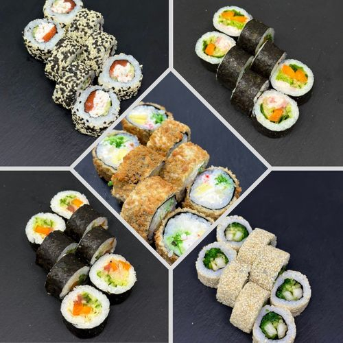 Три ролла на выбор. Нельзя выбрать одинаковые роллы! Японский гарнир не входит в стоимость.