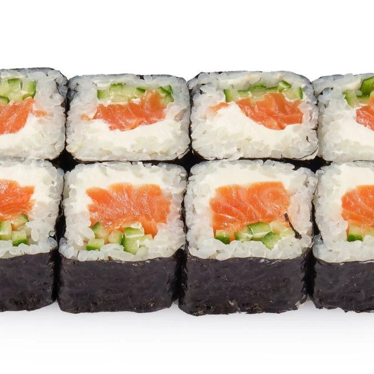 Рис, нори, сыр, огурец, лосось.