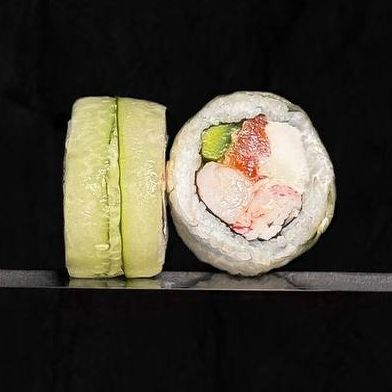 Нори, рис, сыр творожный, лосось, креветка, авокадо, снежный краб, огурец.