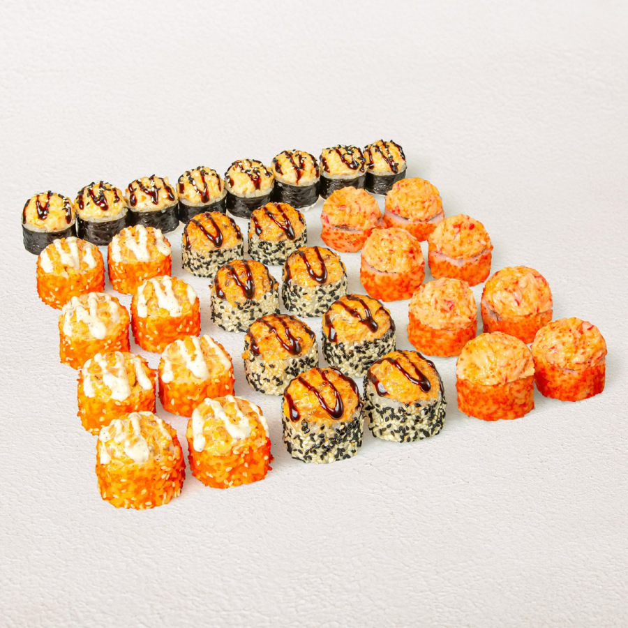 Запеч. ролл Лососик Хот с терияки, запеч. ролл Крабик Хот, суши Запеченный краб (2шт).