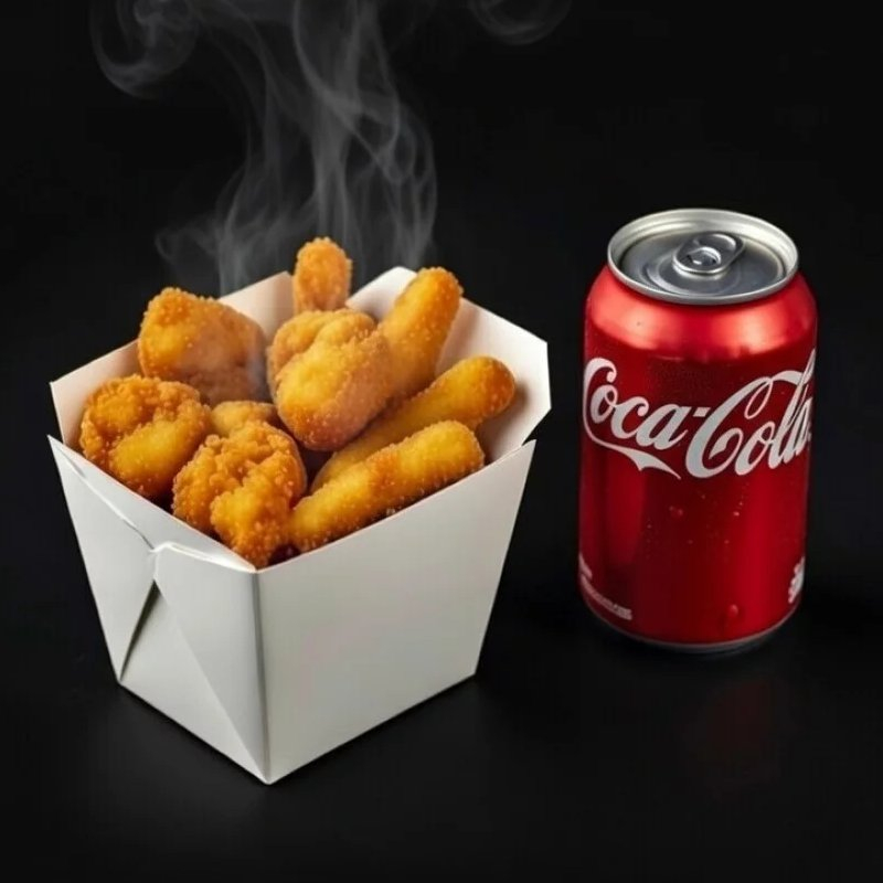 Пицца Бекон Вайт, Пицца BBQ Пепперони, картофель фри большой, наггетсы (8шт), Кока кола 1л.