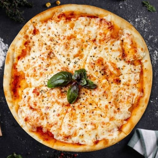 Заказать Тесто, сливочно-чесночный соус, сыр моцарелла, чеддер, бри, дор блю, прованские травы.