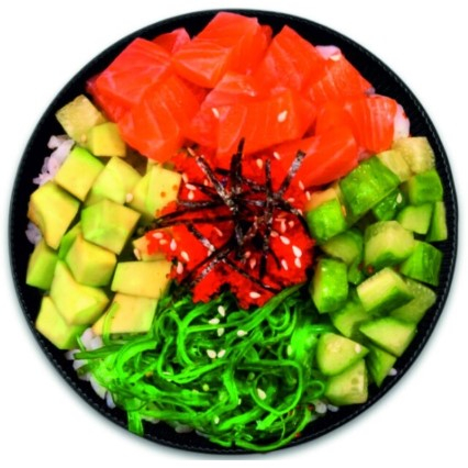 Рис, лосось, авокадо, огурец, икра масаго, чука, ягоды годжи, соус.