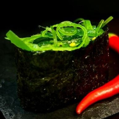 Рис, нори, чука, кунжутный соус.